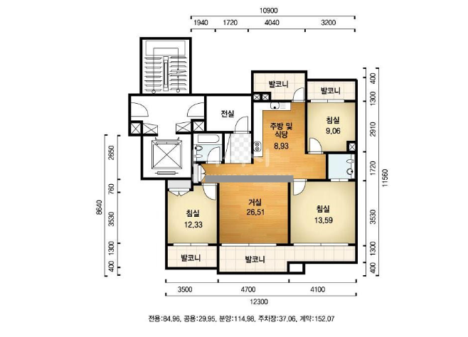 방3, 욕실2, 거실, 주방/식당, 발코니,
