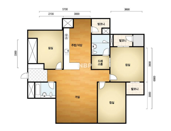 방3, 욕실2, 거실, 주방/식당, 발코니,등