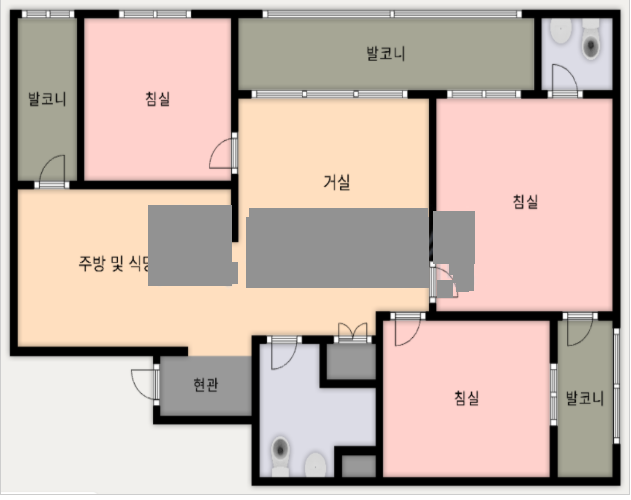방3, 욕실2, 거실, 주방/식당, 발코니,등