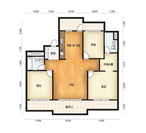 방3, 욕실2, 거실, 주방/식당, 발코니,등