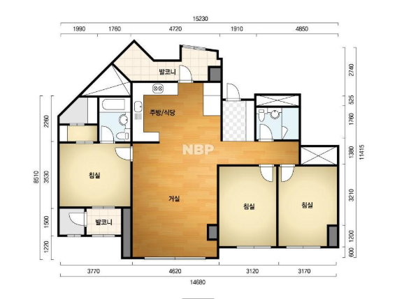 방3, 욕실2, 거실, 주방/식당, 발코니,