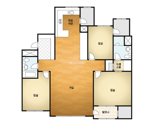 방3, 욕실2, 거실, 주방/식당, 발코니,