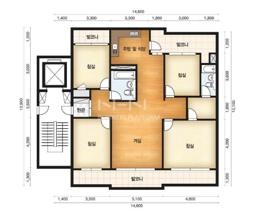 방4, 욕실2, 거실, 주방/식당, 발코니