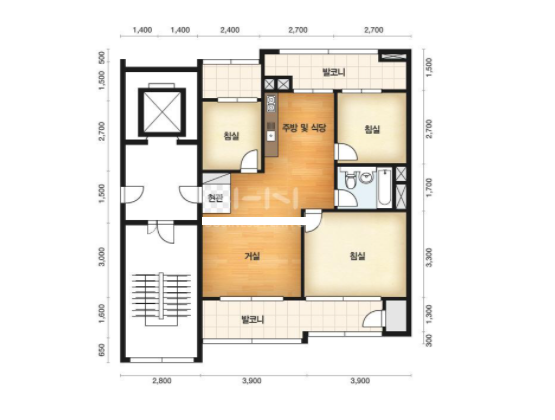 방3, 욕실1, 거실, 주방/식당, 발코니,등