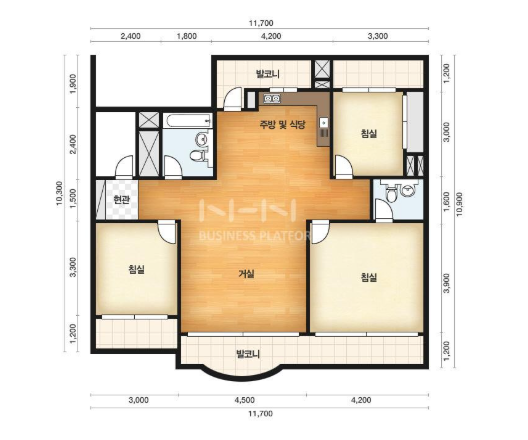 방3, 욕실2, 거실, 주방/식당, 발코니,등