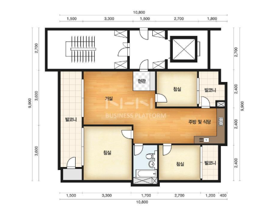 방3, 욕실1, 거실, 주방/식당,발코니,등