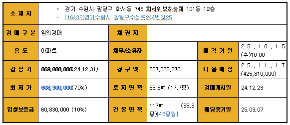 | 경기 수원시 팔달구 인계동 371-1 ,366 삼성 103동 5층 (1) | 2025.09.04 |