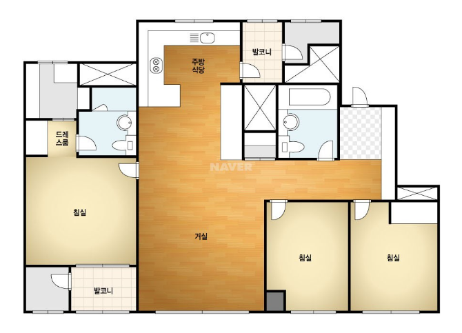 방3, 욕실2, 거실, 주방/식당, 발코니,등