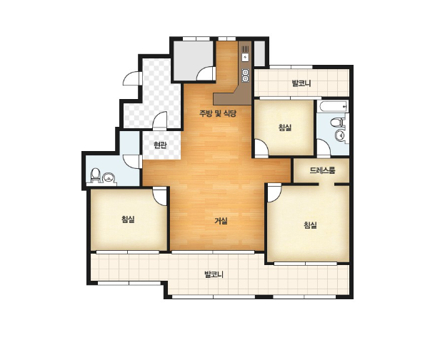 방3, 욕실2, 거실, 주방/식당, 발코니,