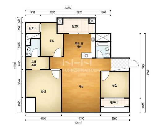방5, 욕실2, 거실, 주방/식당, 발코니,