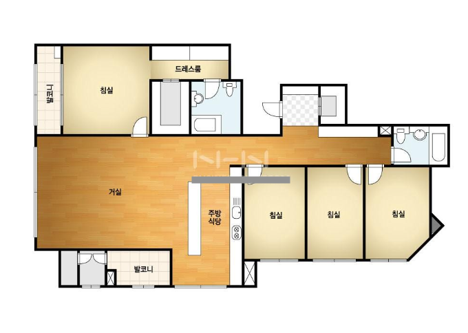 방4, 욕실2, 거실, 주방/식당, 발코니,