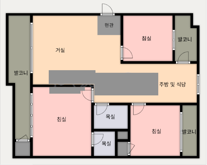 방3, 욕실2, 거실, 주방/식당, 발코니,등