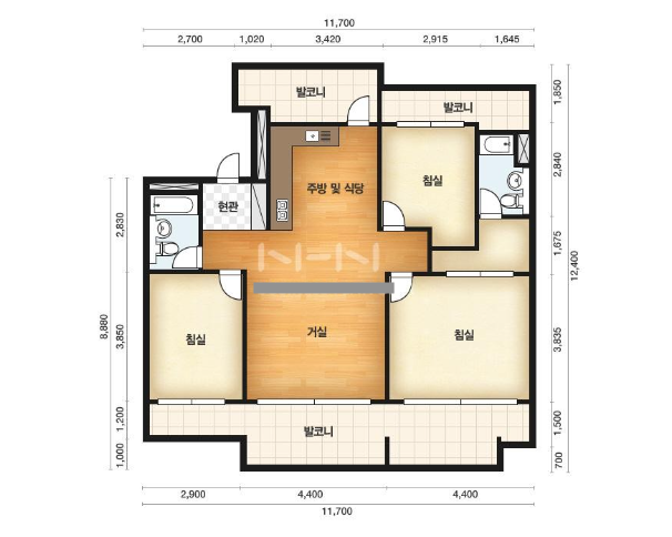 방3, 욕실2, 거실, 주방/식당, 발코니,