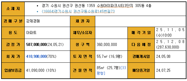 | 경기 수원시 권선구 권선동 1357 수원아이파크시티4단지 414동 11층 (0) | 2025.10.26 |