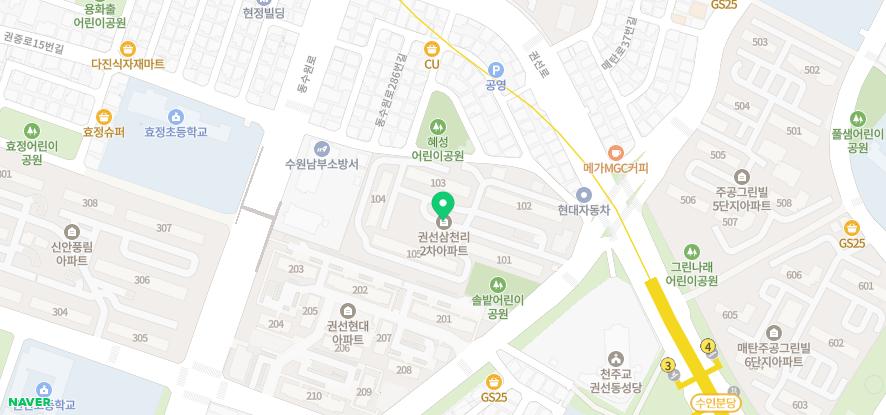 ㆍGS25 매탄삼천리점(104m) ㆍGS25 권선명당점(155m) ㆍGS25 수원은혜점(246m) ㆍCU 매탄그린스카이점(258m) ㆍGS25 영통매현점(331m) ㆍGS25 수원임광점(362m) ㆍ세븐일레븐 수원권선중앙점(410m) ㆍCU 수원권선상록점(470m) ㆍGS수퍼마켓 수원매현점(492m) ㆍ롯데마트 권선점(526m)