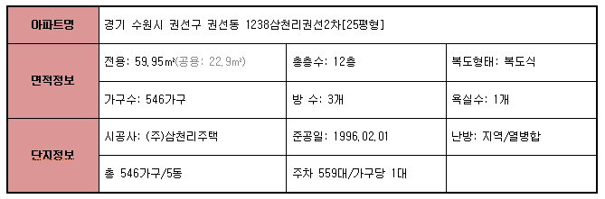 | 경기 수원시 권선구 권선동 1359 수원아이파크시티3단지 305동 4층 (0) | 2025.10.26 |