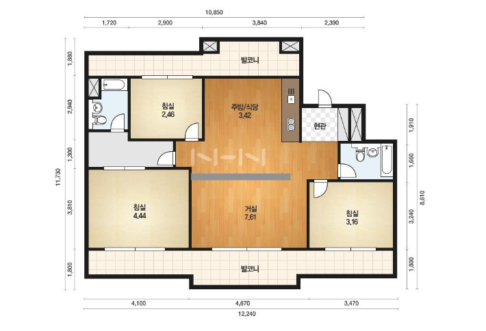 방3, 욕실2, 거실, 주방/식당, 발코니,