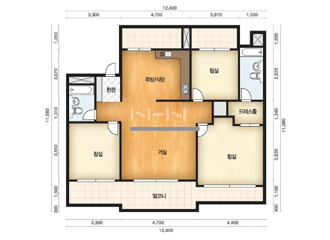 방3, 욕실2, 거실, 주방/식당, 발코니,