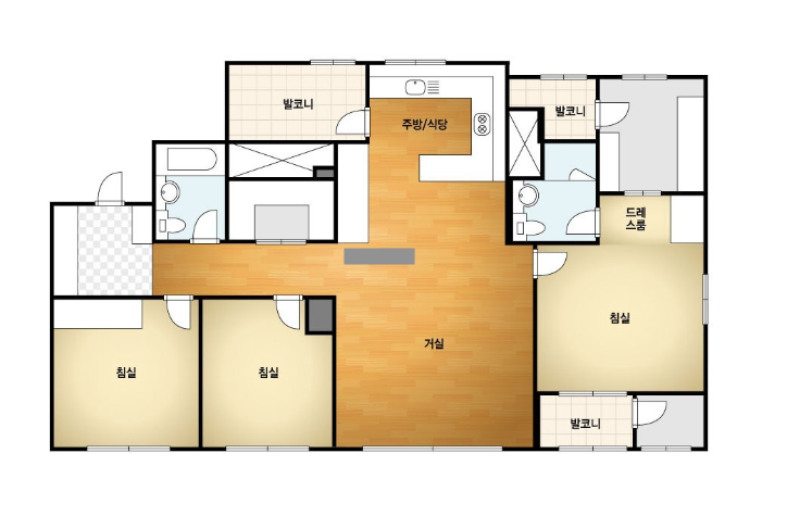 방3, 욕실2, 거실, 주방/식당, 발코니,