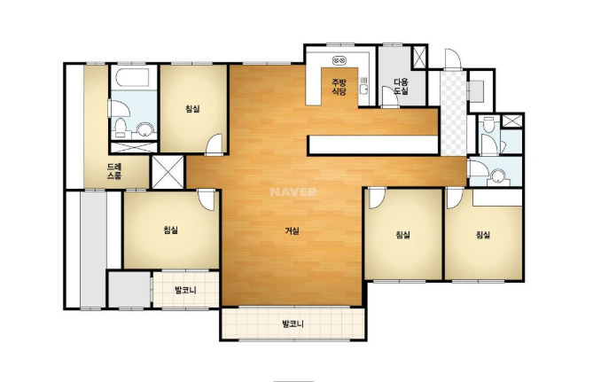 방4, 욕실2, 거실, 주방/식당, 발코니,등