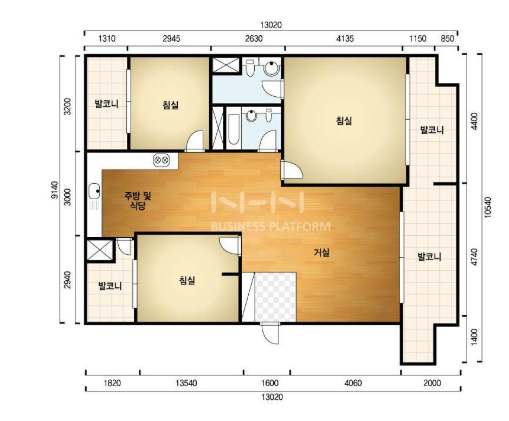 방3, 욕실2, 거실, 주방/식당, 발코니,등