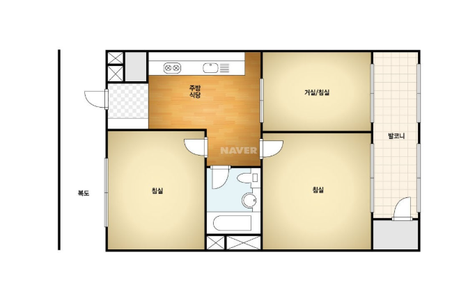 방3, 욕실1, 거실, 주방/식당, 발코니,등