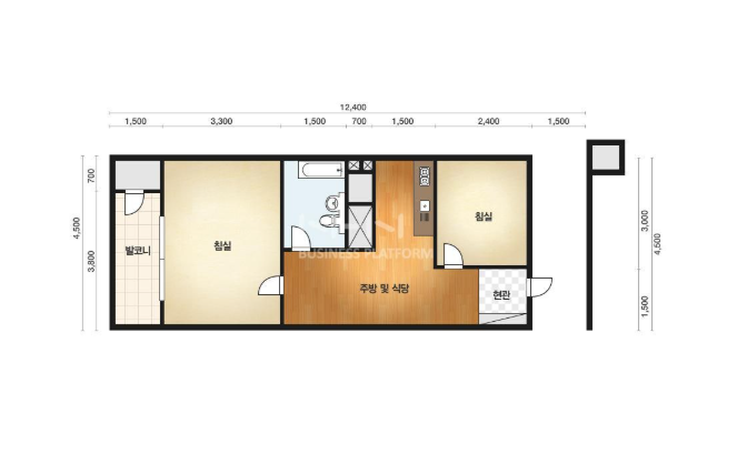 방2, 욕실1, 거실, 주방/식당, 발코니,등