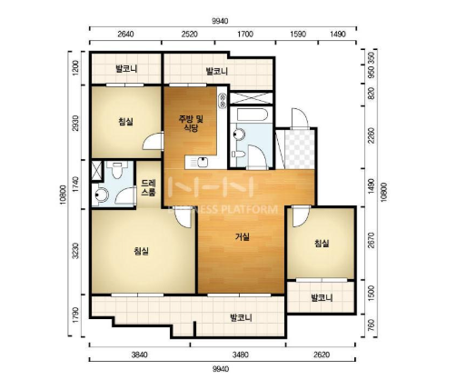 방3, 욕실2, 거실, 주방/식당, 발코니,