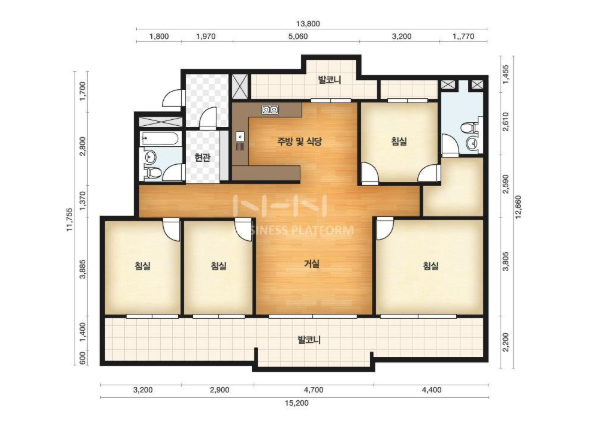 방4, 욕실2, 거실, 주방/식당, 발코니,등