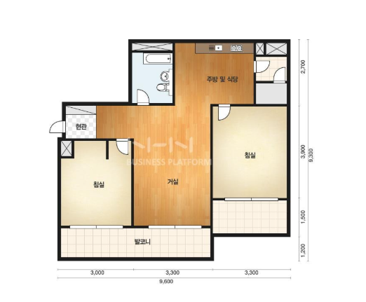 방2, 욕실1, 거실, 주방/식당, 발코니,등