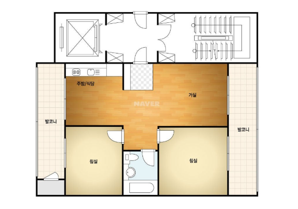 방2, 욕실1, 거실, 주방/식당, 발코니,등