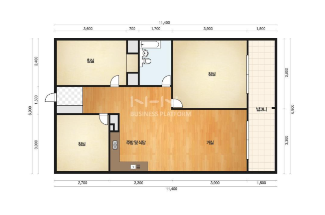 방3, 욕실1, 거실, 주방/식당, 발코니,등