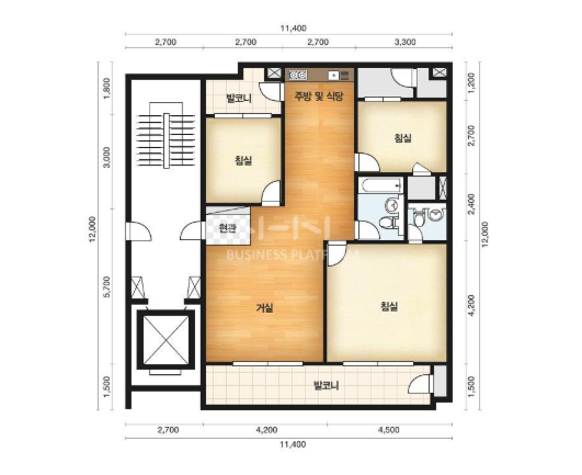 방3, 욕실2, 거실, 주방/식당, 발코니,