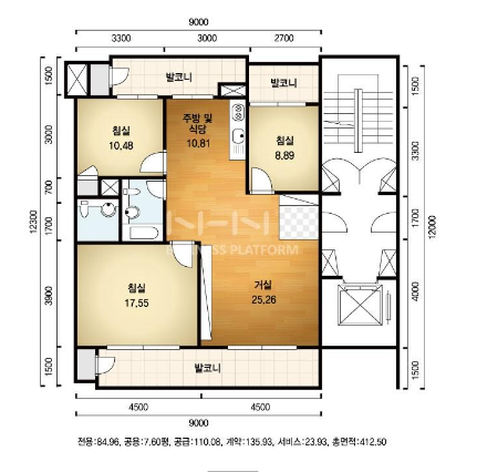 방3, 욕실2, 거실, 주방/식당, 발코니,등