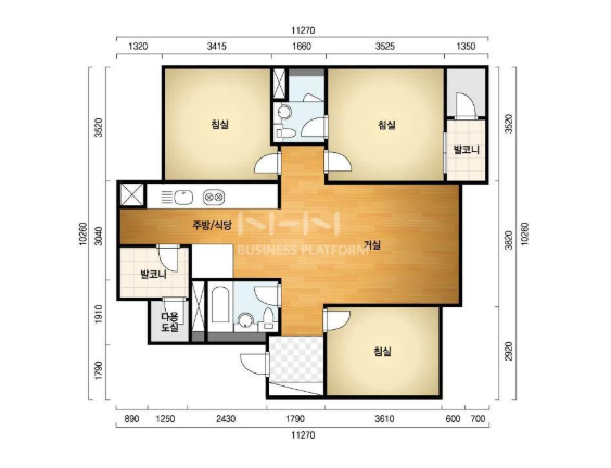 방3, 욕실2, 거실, 주방/식당, 발코니,