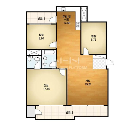 방3, 욕실2, 거실, 주방/식당, 발코니,등