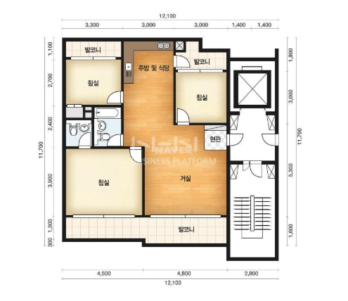방3, 욕실2, 거실, 주방/식당, 발코니,등