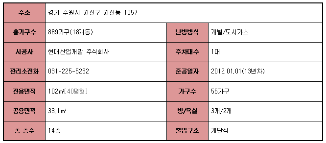 | 경기 수원시 권선구 권선동 1240 현대 205동 15층 (2) | 2025.12.19 |