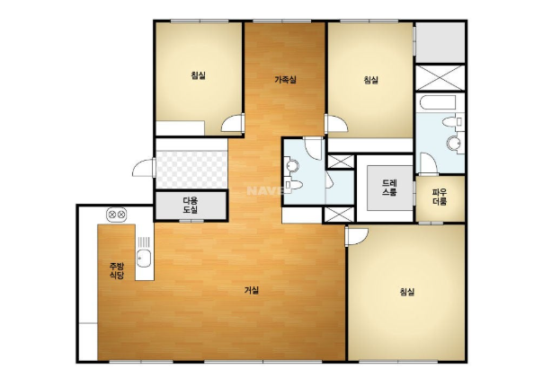 방3, 욕실2, 거실, 주방/식당, 발코니,등