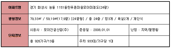 ☆모아미래도 아파트 단지 정보☆