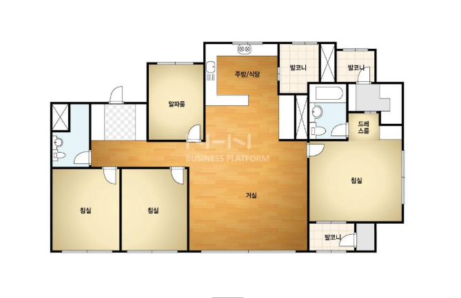 방4, 욕실2, 거실, 주방/식당, 발코니,드레스룸등