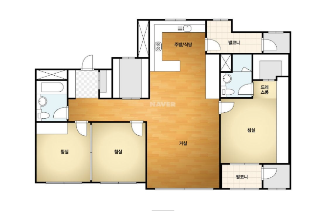 방3, 욕실2, 거실, 주방/식당, 발코니,