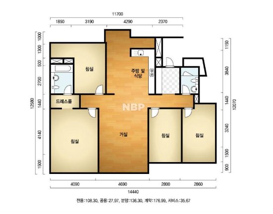 방4, 욕실2, 거실, 주방/식당, 발코니,