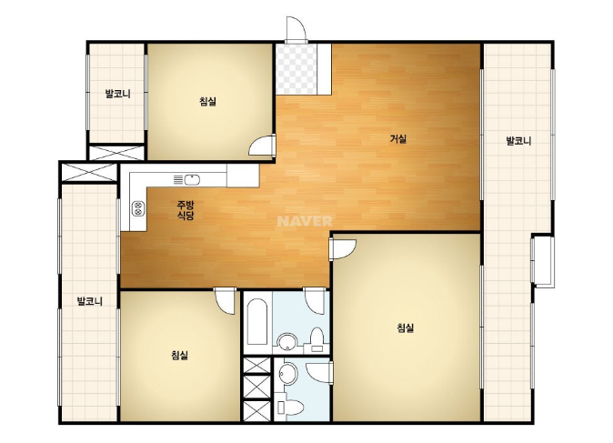 방3, 욕실2, 거실, 주방/식당, 발코니,등