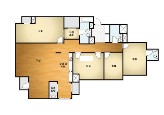 방4, 욕실3, 거실, 주방/식당, 발코니,