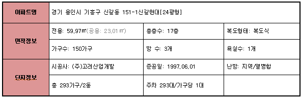 ☆신갈현대 아파트 단지 정보☆