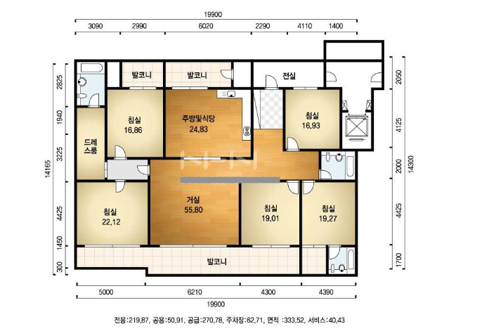 방5, 욕실3, 거실, 주방/식당, 발코니,