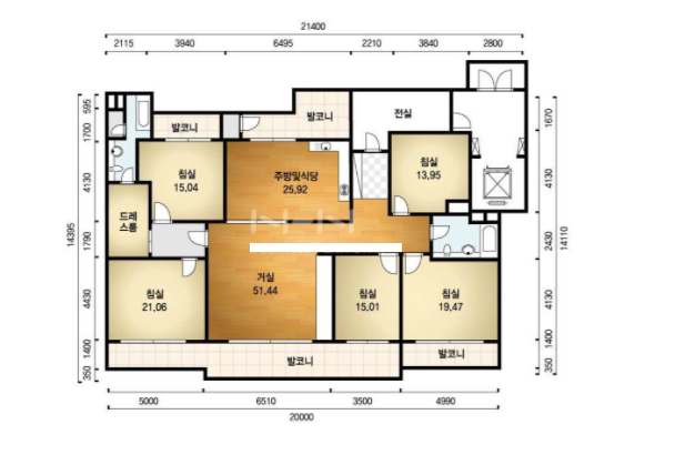 방5, 욕실2, 거실, 주방/식당, 발코니,