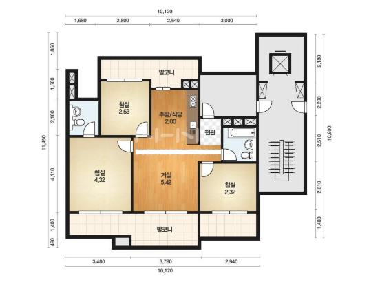 방3, 욕실2, 거실, 주방/식당, 발코니,등