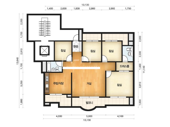 방4, 욕실2, 거실, 주방/식당, 발코니,드레스룸등